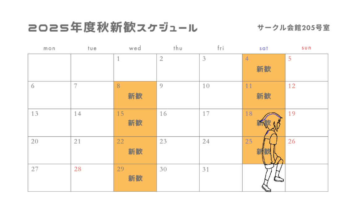 2025年度北大アニ研の秋新歓は10月4日から毎週水曜日19:00~20:00、土曜日16:00~17:00にサークル会館205号室で行います!